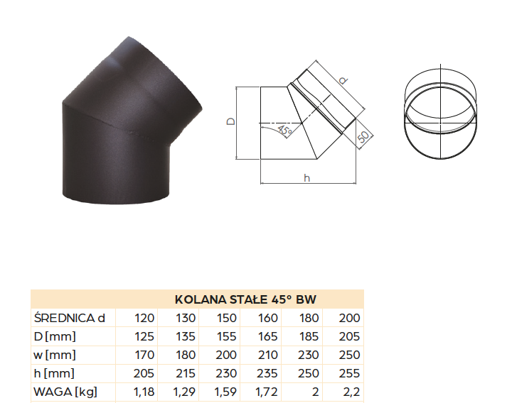 Kouřové koleno 45°, ø120mm, tl. mat. 2mm