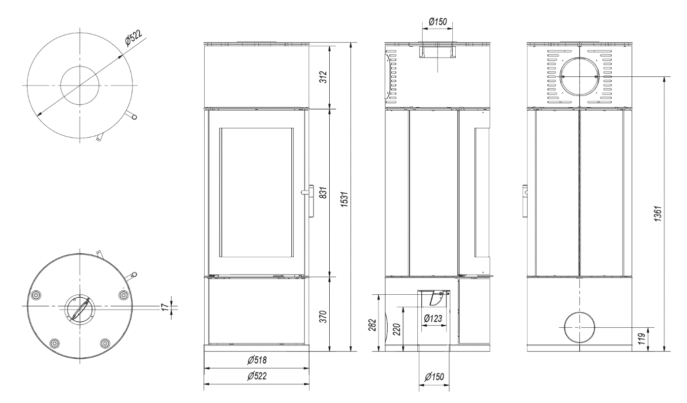 Kamna lze snadno udržovat v čistotě díky odnímatelnému roštu a nádobě, kde se shromažďuje popel.