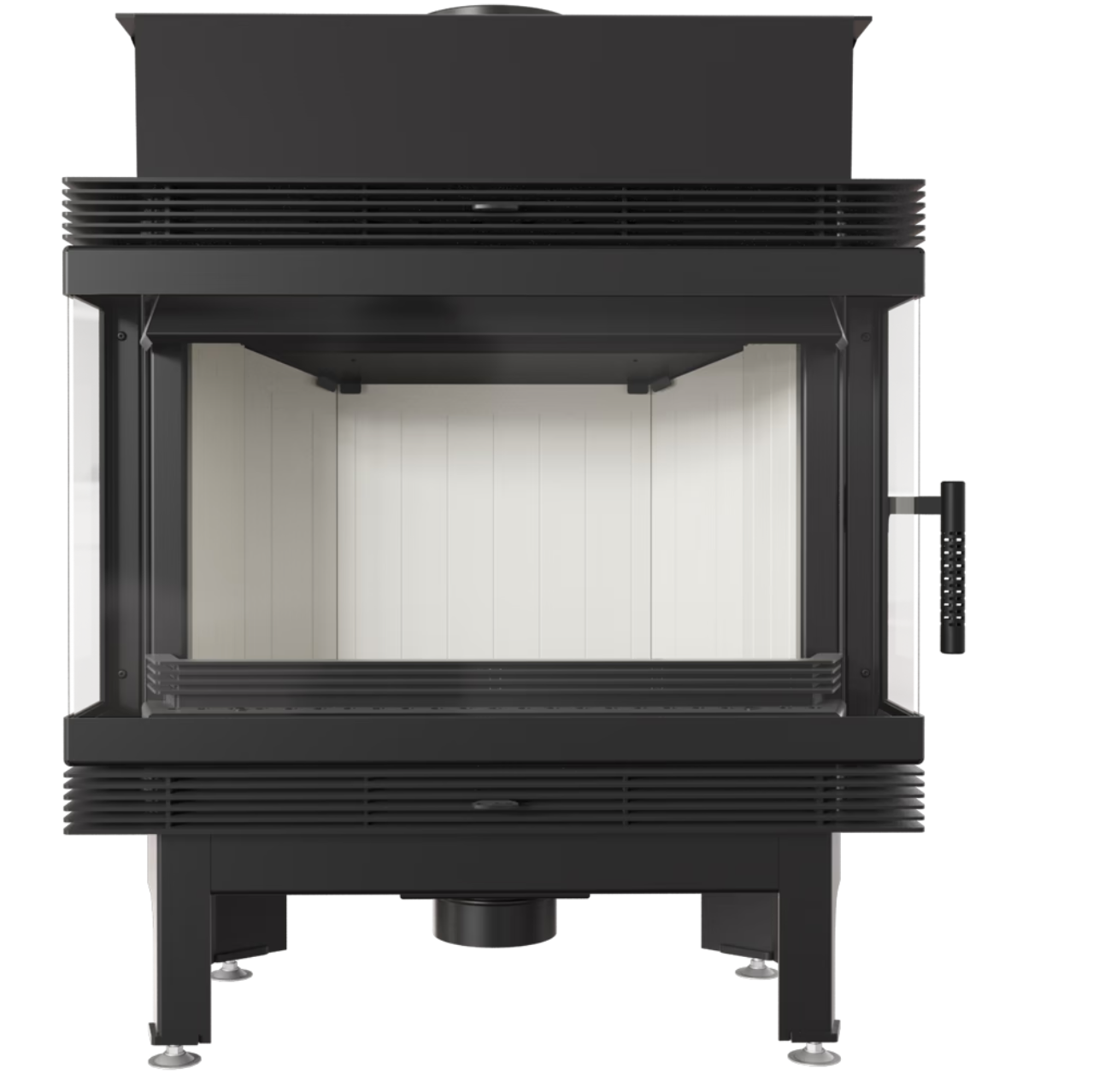 - Speciální perforovaný design madla dvířek chrání před nadměrným ohřevem, což zvyšuje komfort používání krbu.