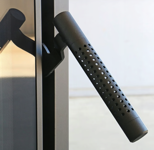 Speciální perforovaný design madla chrání před nadměrným ohřevem, což zvyšuje komfort používání krbu.