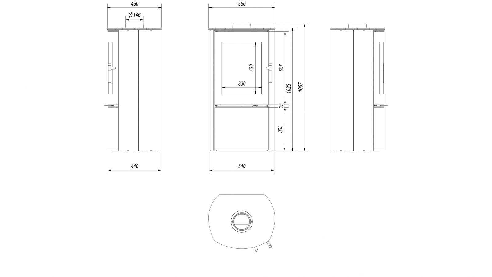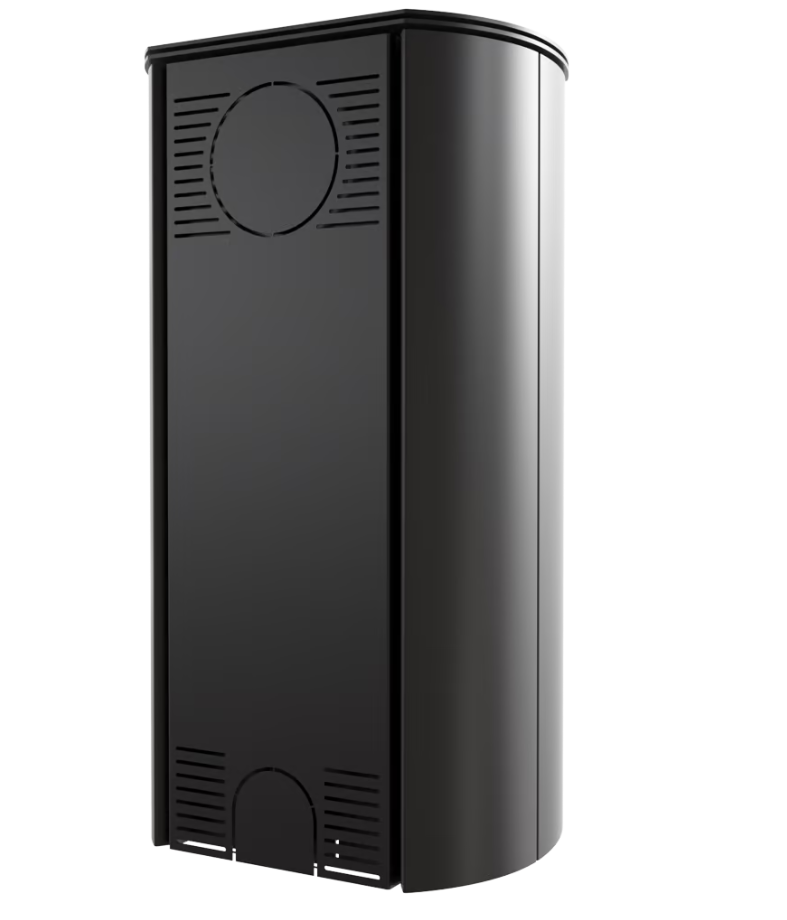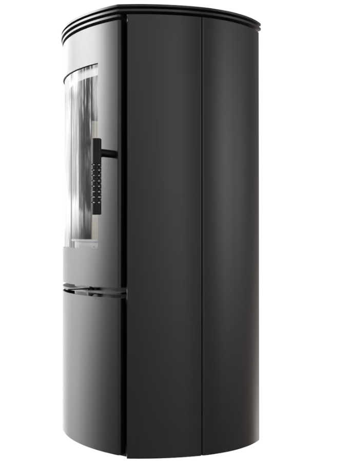 Pod topeništěm je přídavná uzavřená komora, ve které je ukryt systém přívodního připojení. Dveře se otevírají pomocí systému click-clack, který nevyžaduje další madlo.