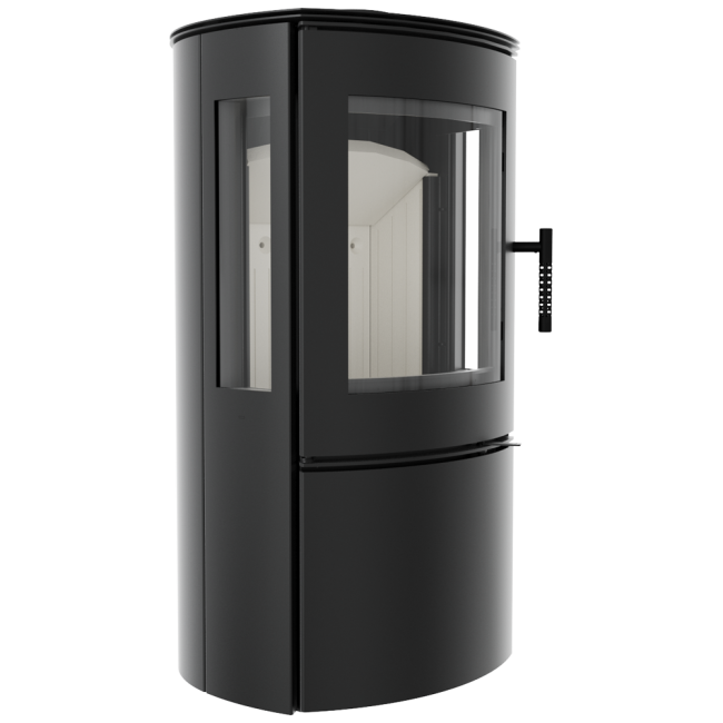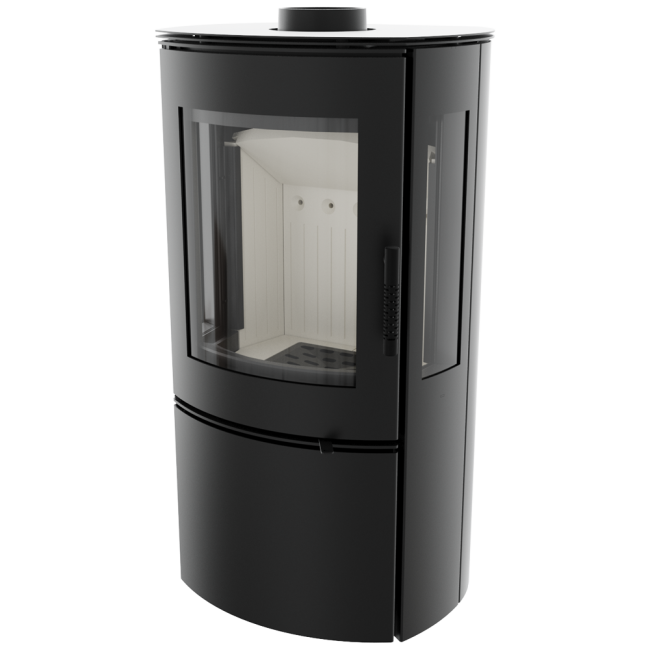 Boční okna krbu jsou opatřena dvojitým zasklením, které zadržuje teplo ve spalovací komoře a zvyšuje zde teplotu.