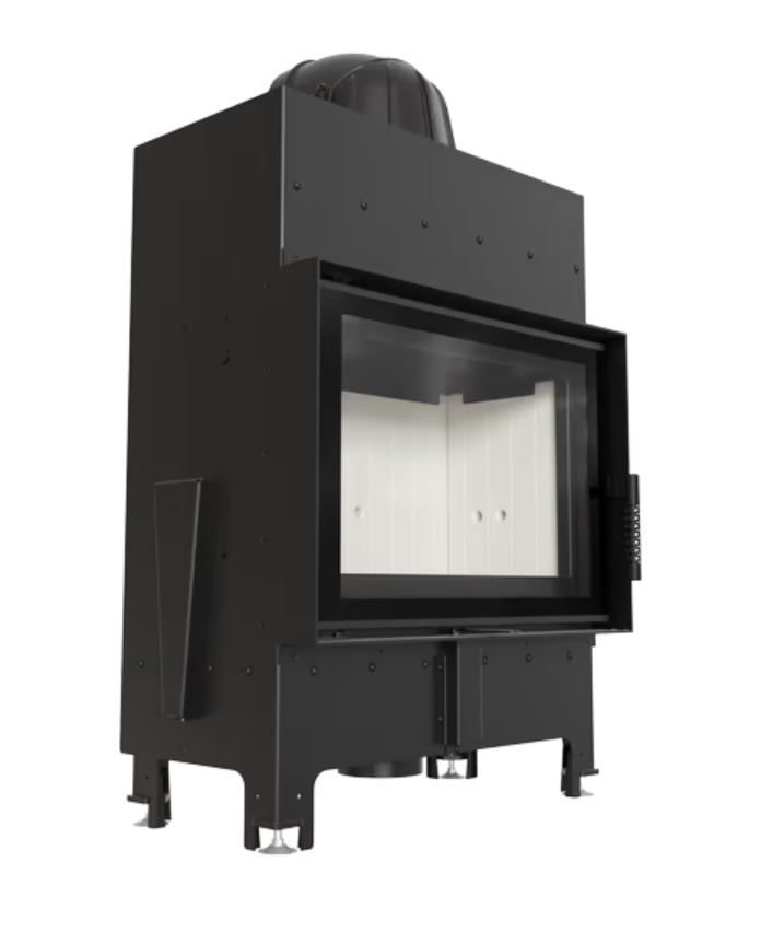 - Speciální perforovaný design madla dvířek chrání před nadměrným ohřevem, což zvyšuje komfort používání krbu.