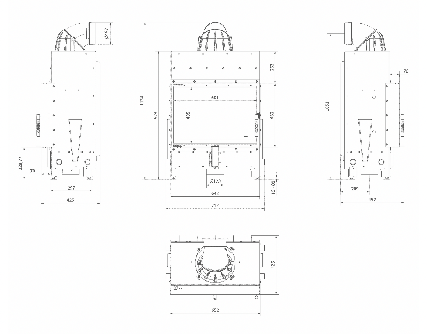 - Pokročilá konstrukce zahrnuje vestavěný přívod vzduchu ø 125mm, který zajišťuje efektivní spalování dřeva.