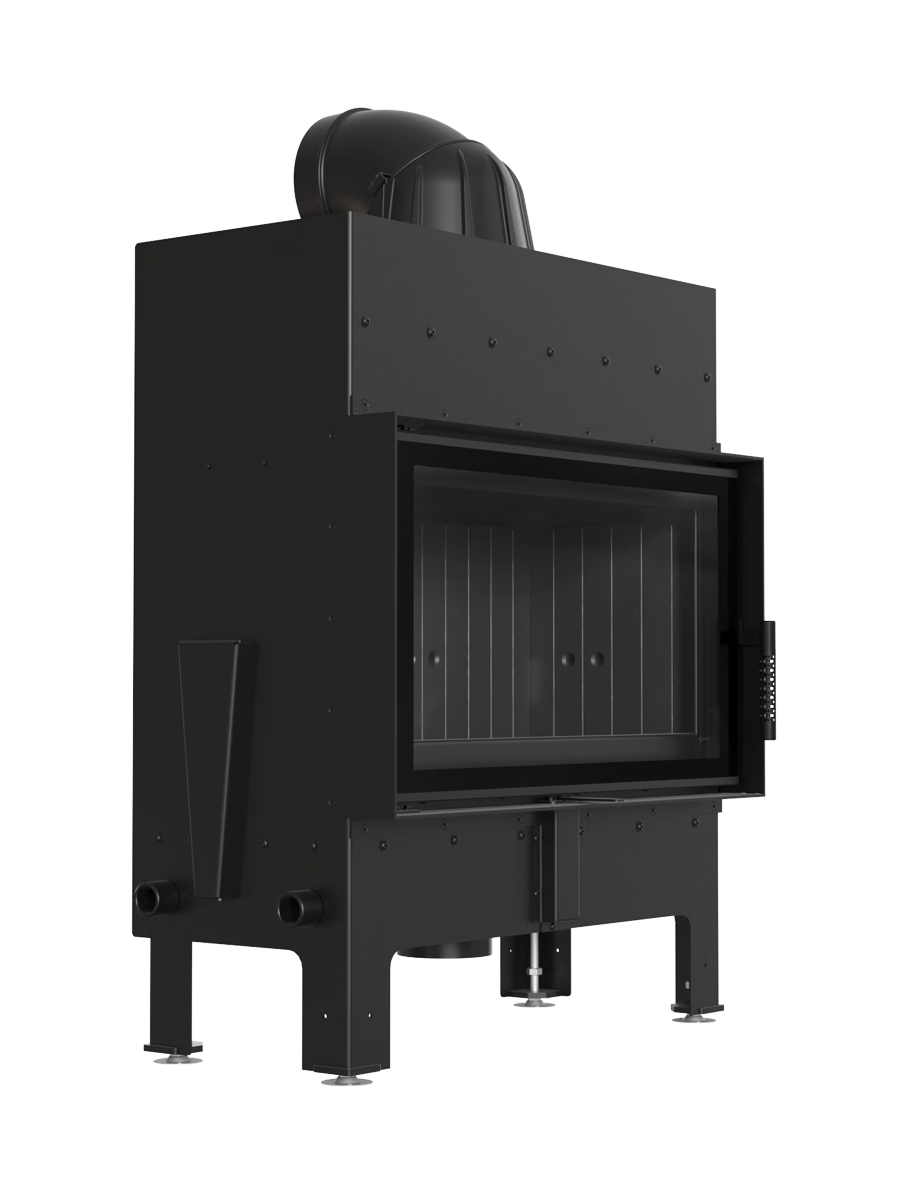 - Speciální perforovaný design madla dvířek chrání před nadměrným ohřevem, což zvyšuje komfort používání krbu.