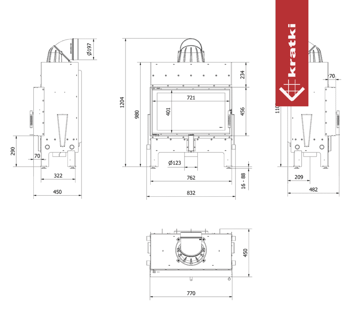 - Pokročilá konstrukce zahrnuje vestavěný přívod vzduchu ø 125mm, který zajišťuje efektivní spalování dřeva.