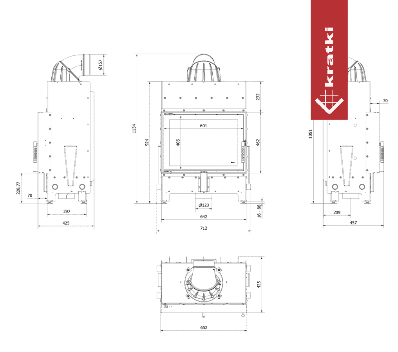 - Pokročilá konstrukce zahrnuje vestavěný přívod vzduchu ø 125mm, který zajišťuje efektivní spalování dřeva.