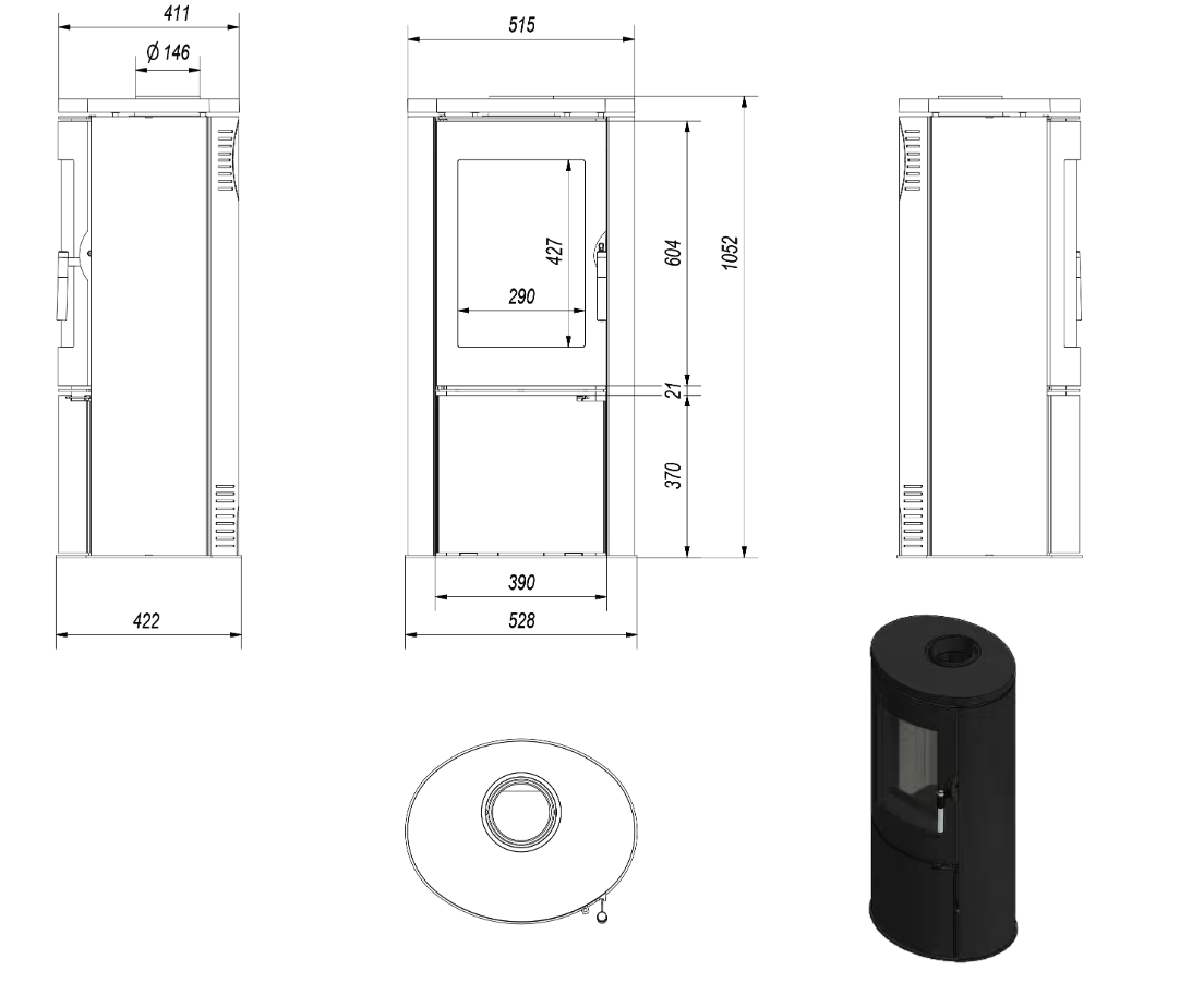 Nedílnou součástí kamen jsou zásuvná nádoba a pohyblivý rošt, které umožňují snadné odstraňování zbylého popela.