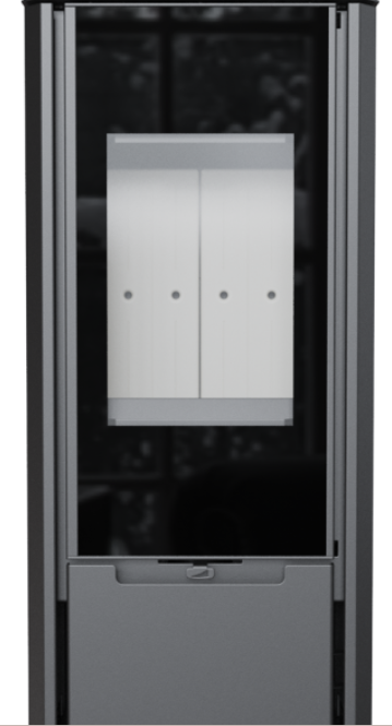 U kamen ENYO je použit inovativní systém otevírání dveří bez kliky. Ovlivňuje nejen bezpečné používání, ale také zajišťuje, že v popředí bude vždy pouze oheň. Moderní styl navíc podtrhuje skleněná tabule.