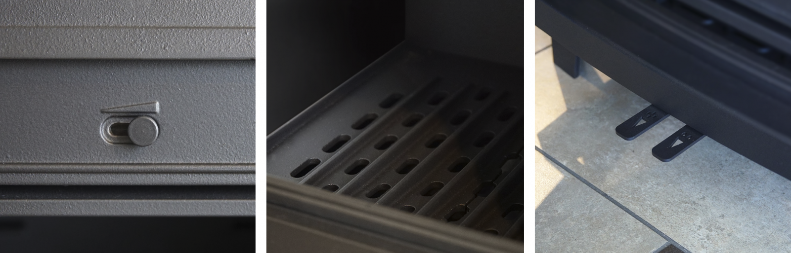 Regulace přívodu vzduchu je intuitivní formou dvou samostatných klapek – jedné pro primární vzduch a druhé pro sekundární vzduch. Pohyb posuvných prvků je plynulý a tichý, což zajišťuje pohodlí při používání.