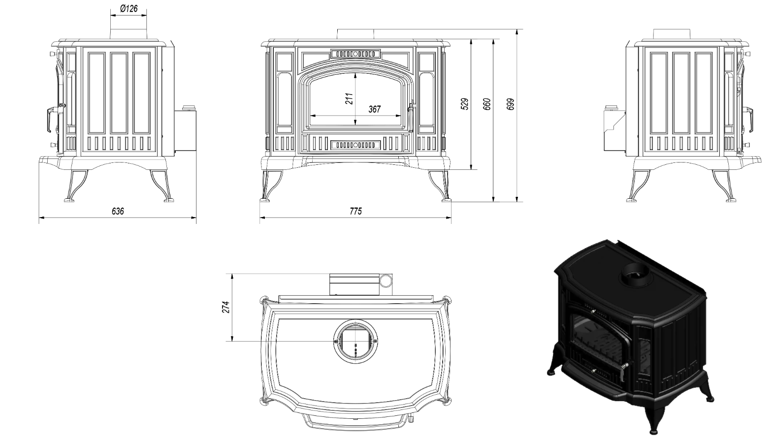 Důležitou součástí jsou také zásuvná nádoba a pohyblivý rošt, které umožňují snadné odstraňování zbylého popela.