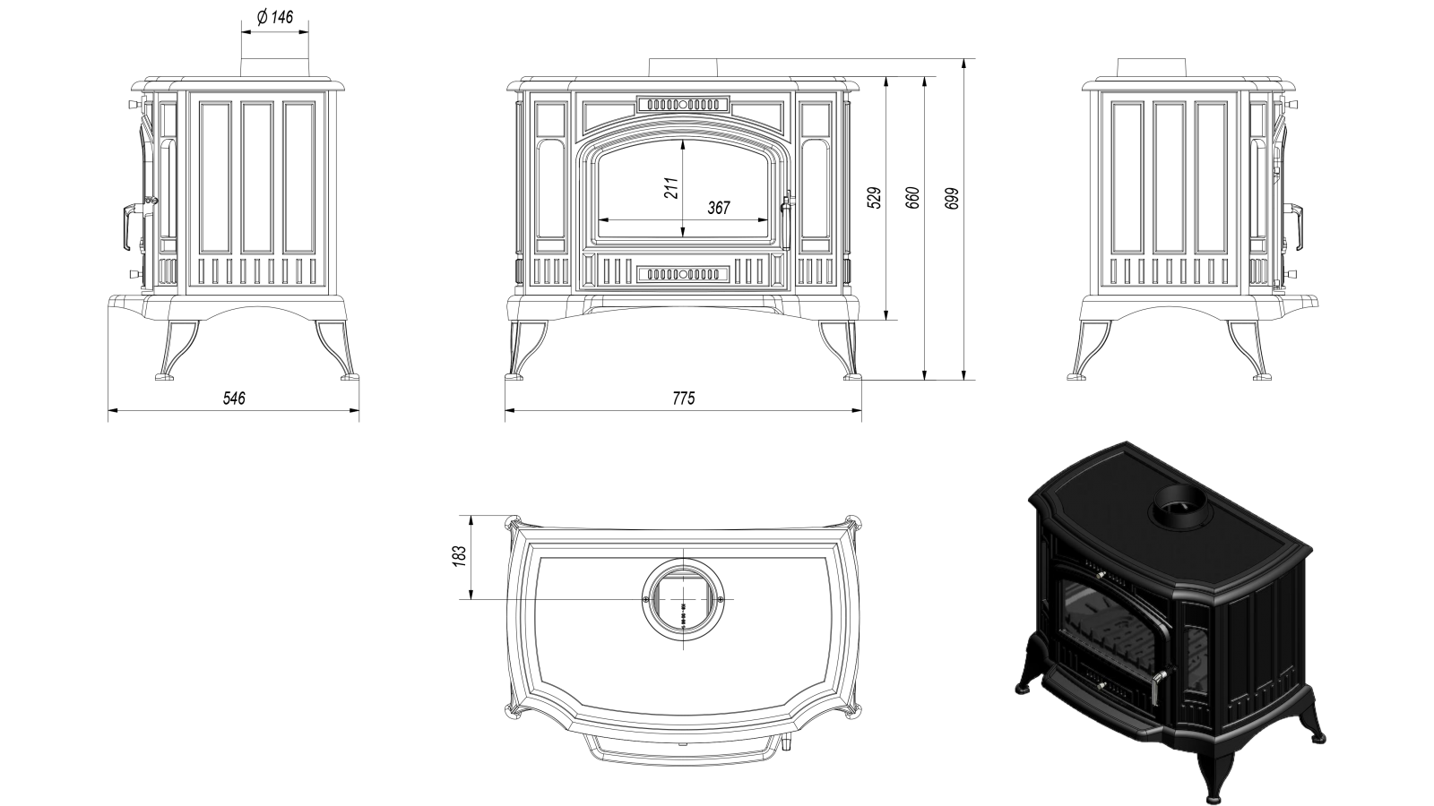 Krbová Kamna KRATKI KOZA K9 jsou z vysoce kvalitní litiny o tloušťce 8mm.