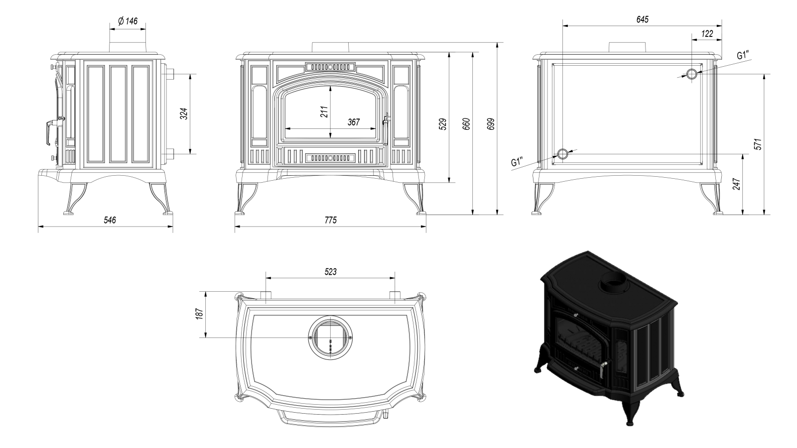 Tento typ kamen je vybaven vodním výměníkem, vodní panel je z oceli o tloušťce 4 mm.