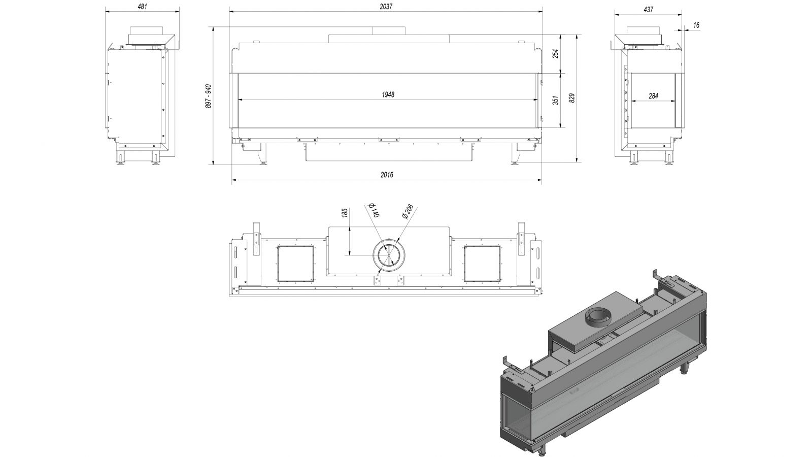 KRATKI LEO 200 levá plynová krbová vložka - zemní plyn