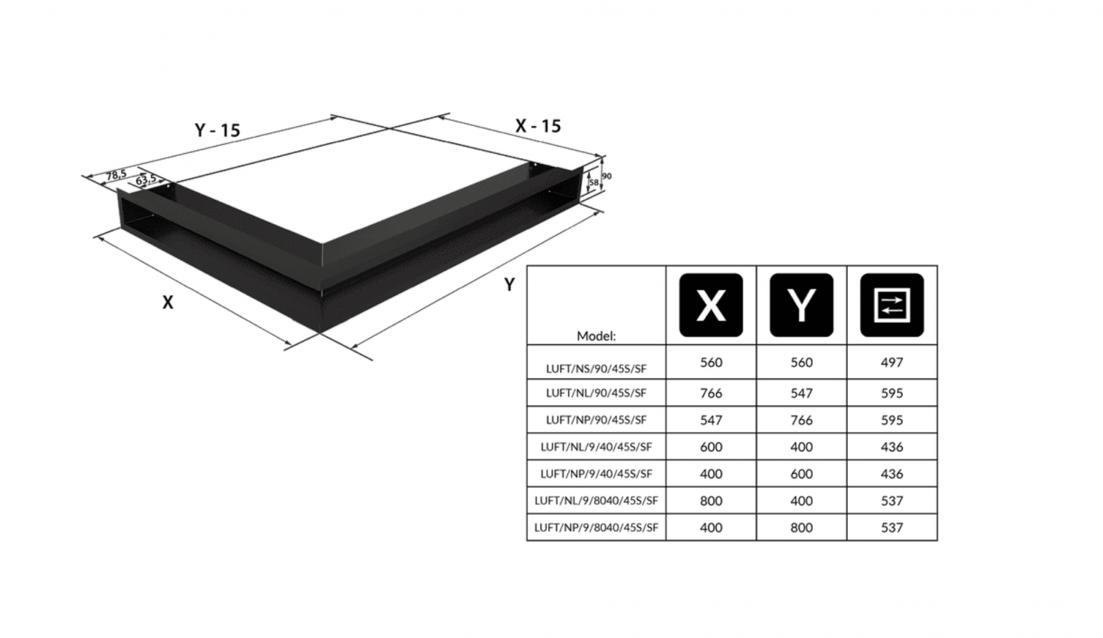 Krbová mřížka LUFT je estetickým zakončením kanálů rozvádějících teplý vzduch od krbu.