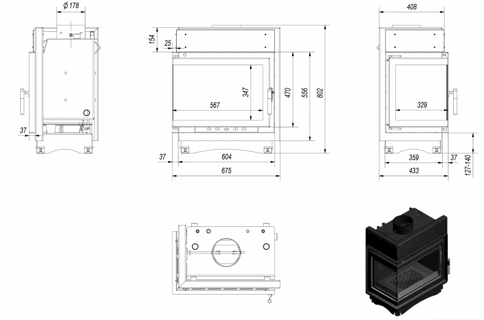- Vložka má popelník a pohyblivý rošt, který usnadňuje odstraňování popela.