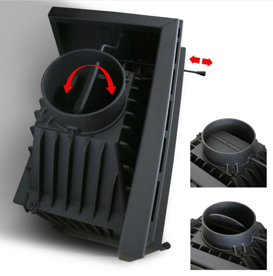 - Vložka je vybavena vestavěnou klapkou umožňující ruční regulaci tahu, což přispívá ke zvýšené účinnosti.