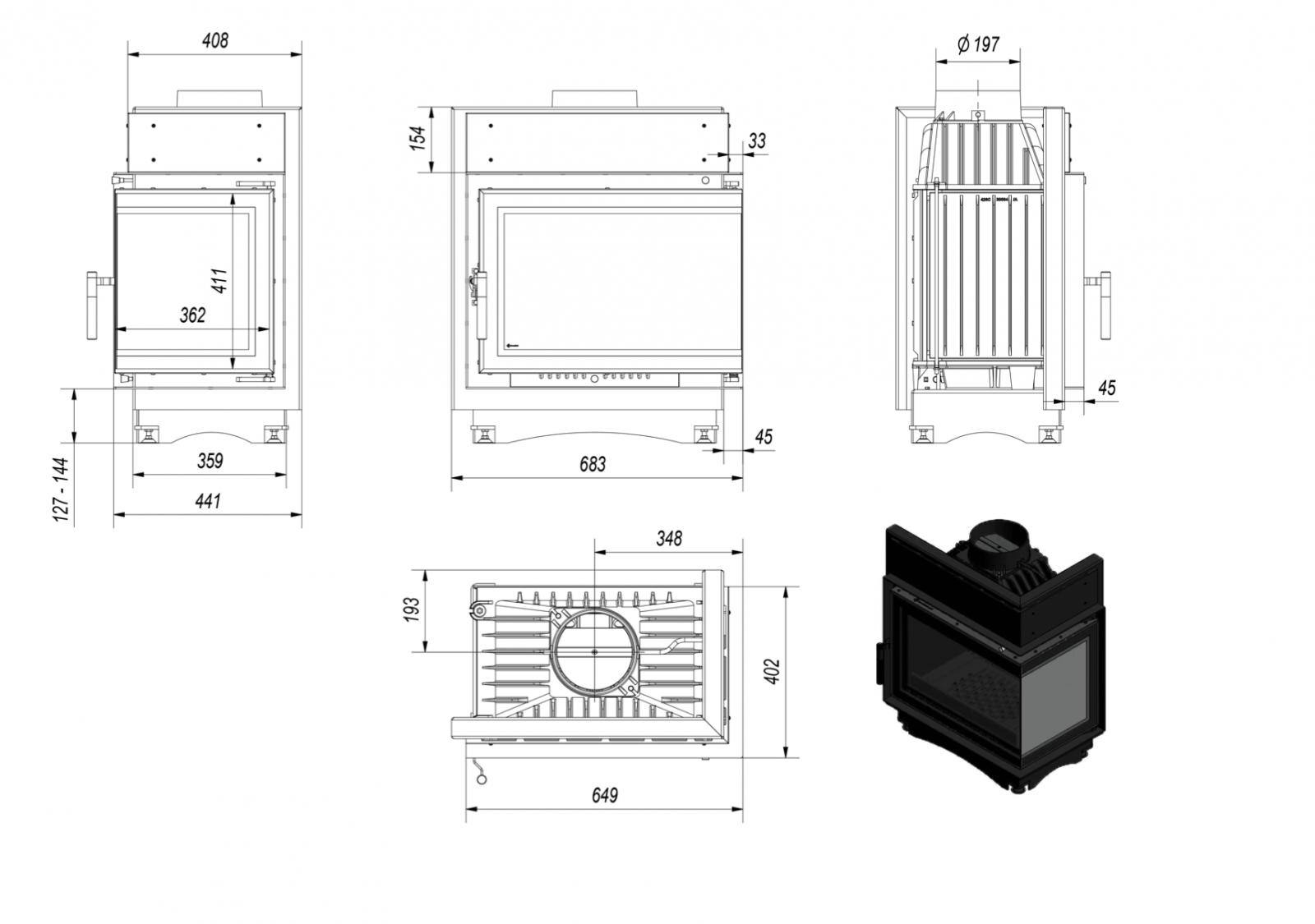 - Rám a dveře krbové vložky jsou vyrobeny z vysokoteplotní oceli.