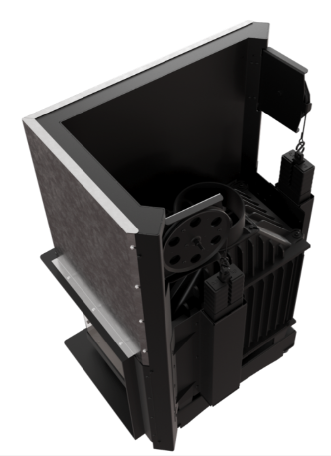 - Možnost vyrovnání krbové vložky díky nastavitelným nožkám.