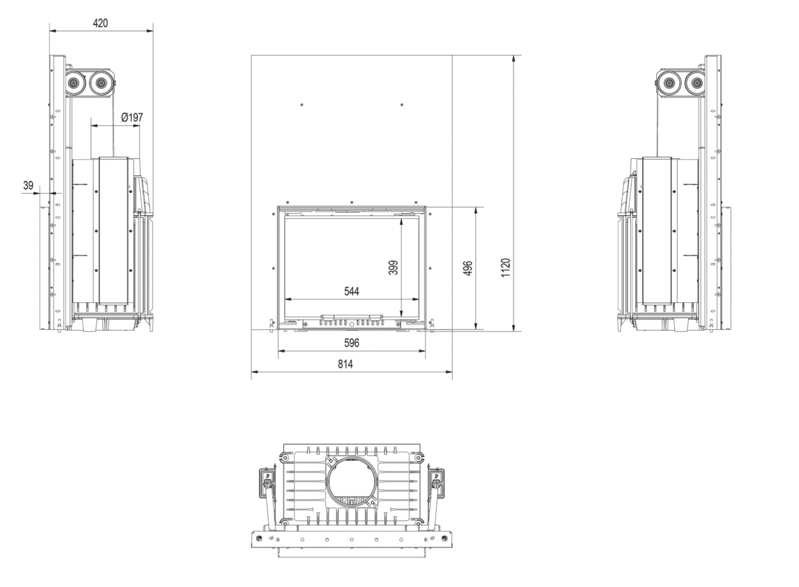 - Možnost vyrovnání krbové vložky díky nastavitelným nožkám.
