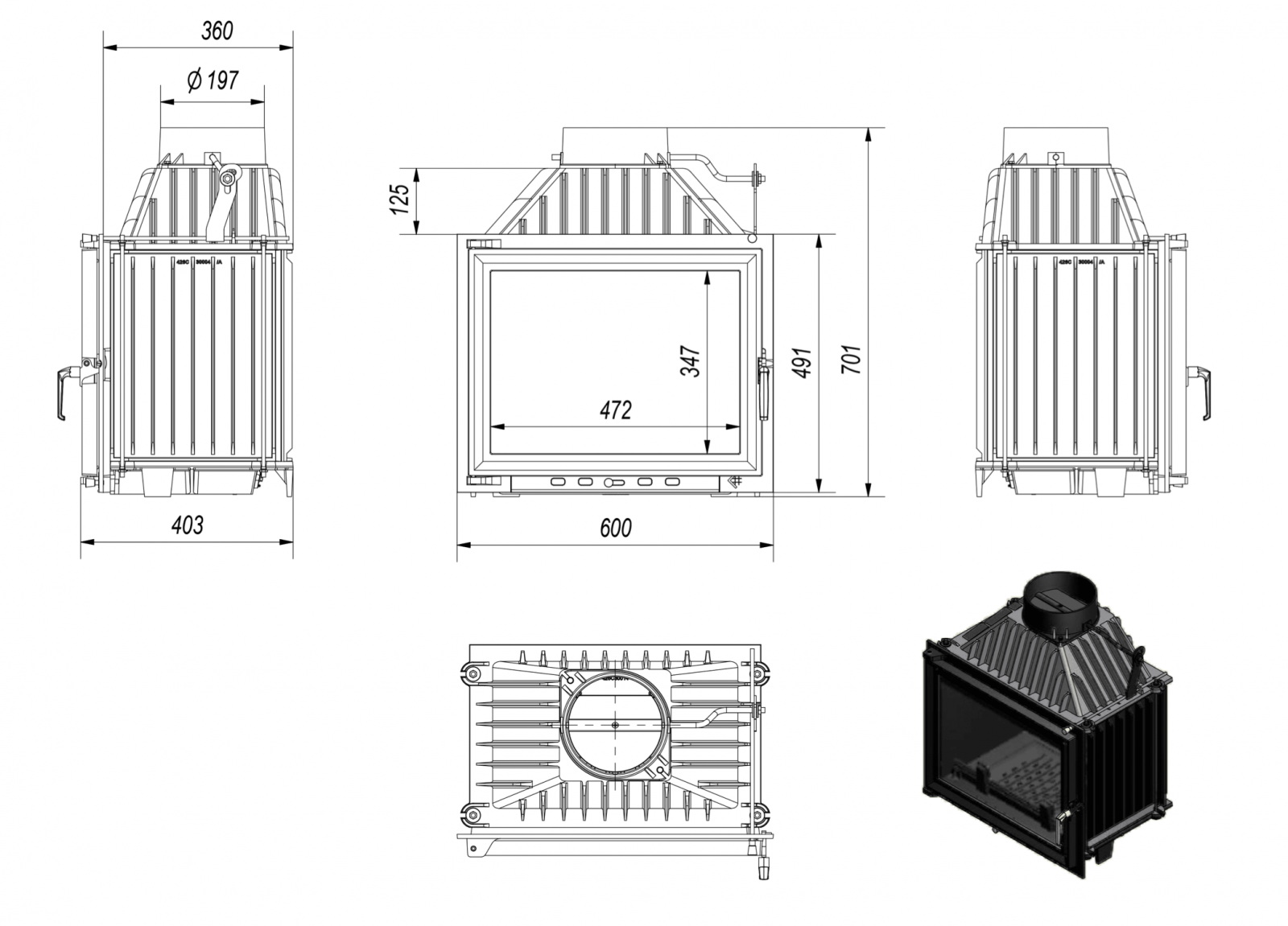 - Díky hustě uspořádaným radiátorům a stěnám pece z vysoce kvalitní litiny o tloušťce 8 mm je zajištěno maximální využití tepla.