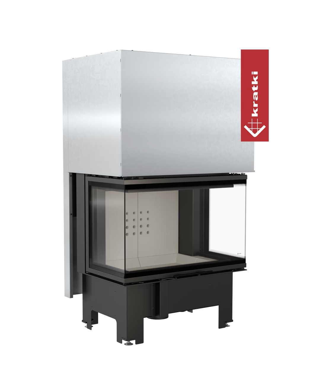 Dvojitý systém otevírání dveří nahoru (GUILLOTINE) a do strany. Zvednutá a snížená dvířka usnadňují nakládání množství dřeva a mechanismus bočního otevírání umožňuje efektivnější čištění skla.