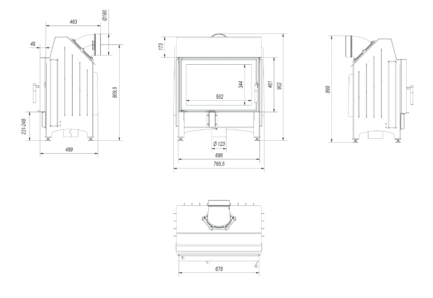 - Součástí krbové vložky je přívod vzduchu ø 125mm