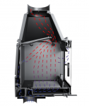 - Díky hustě uspořádaným radiátorům a stěnám pece z vysoce kvalitní litiny o tloušťce 8 mm je zajištěno maximální využití tepla.
