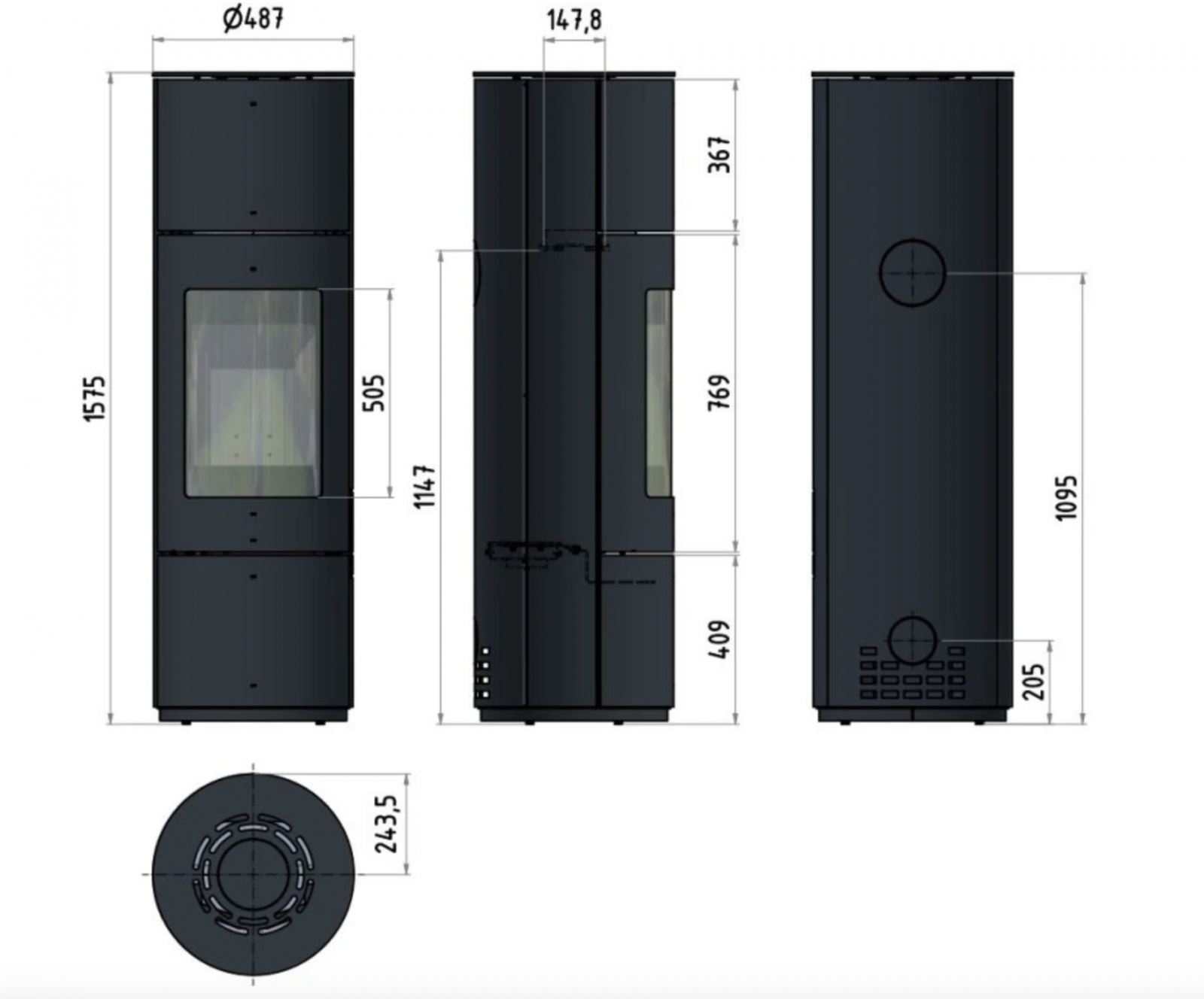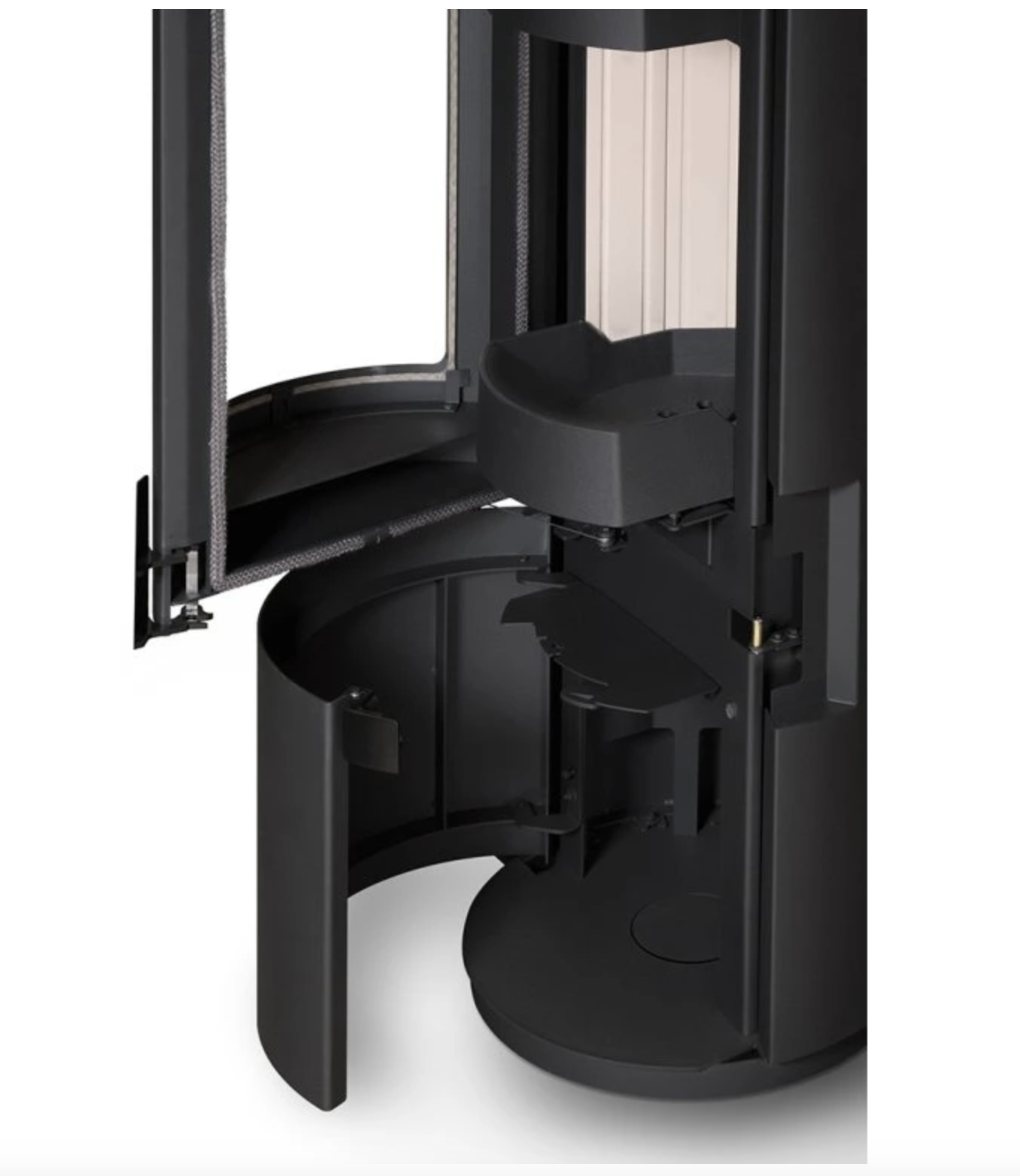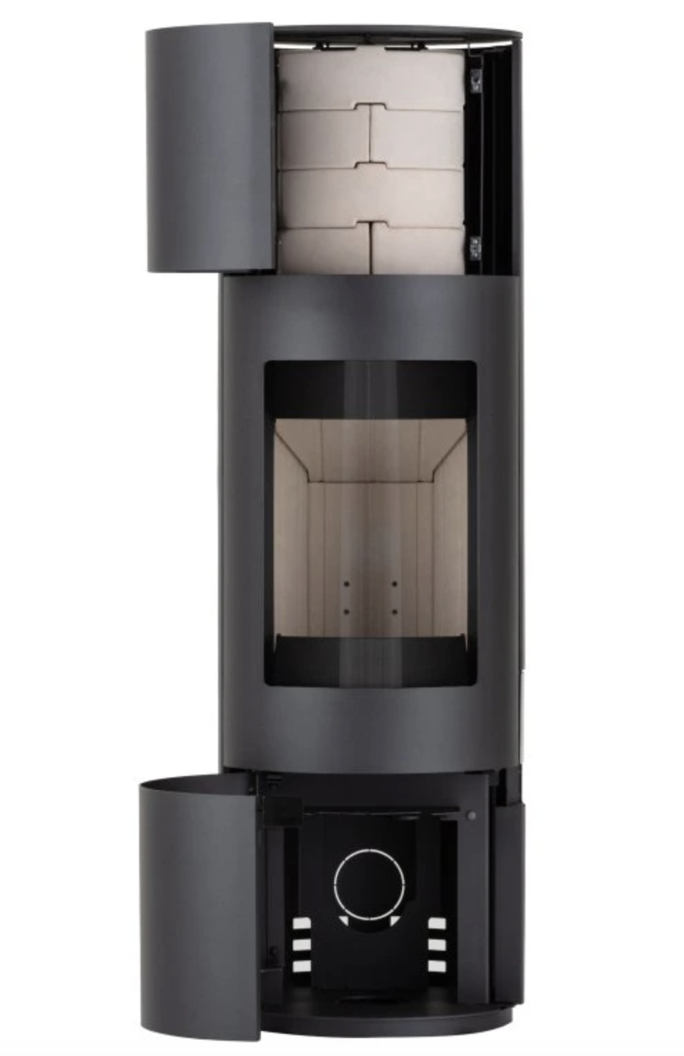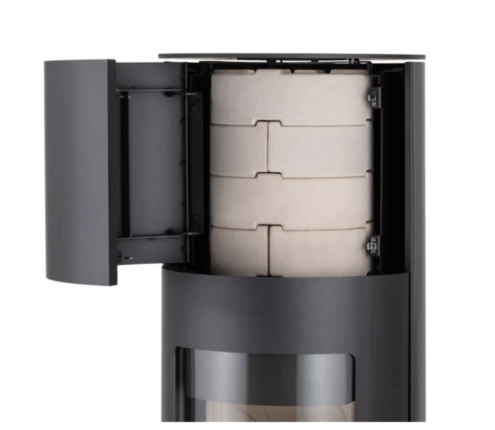 Elegantní a kompaktní česká krbová kamna kruhového půdorysu, vhodná pro každý interiér. Kamna skvěle vyniknou i uprostřed místnosti. Součástí dodávky je 64Kg akumulačních prstenců. Krbová kamna jsou vhodná pro nízkoenergetické domy. Disponují systémem centrálního přívodu externího vzduchu. Odvětrávaná designová klika umožňuje manipulaci během topení. Dveře je možné aretovat v poloze otevřeno. Ve standardu je možné zapojení horního nebo zadního odvodu spalin. Díky sekundárnímu přívodu vzduchu je sklo dvířek omýváno, a tak nedochází k usazování nečistot. Spalovací komora je vyložena betonovými tvarovkami. Regulaci primárního a sekundárního přívodu vzduchu lze řídit jediným ovládacím prvkem.