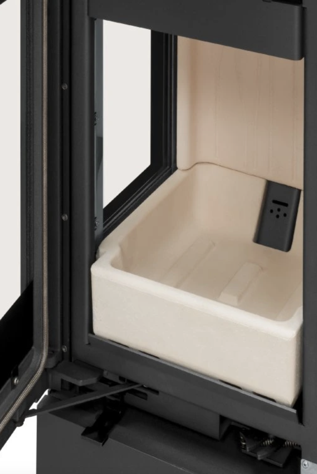 Elegantní a kompaktní česká krbová kamna kubického tvaru, vhodná pro každý interiér. Krbová kamna jsou vhodná pro nízkoenergetické domy. Disponují systémem centrálního přívodu externího vzduchu. Odvětrávaná designová klika umožňuje manipulaci během topení. Dveře je možné aretovat v poloze otevřeno. Ve standardu je možné zapojení horního nebo zadního odvodu spalin. Díky sekundárnímu přívodu vzduchu je sklo dvířek omýváno, a tak nedochází k usazování nečistot. Spalovací komora je vyložena betonovými tvarovkami. Regulaci primárního a sekundárního přívodu vzduchu lze řídit jediným ovládacím prvkem.