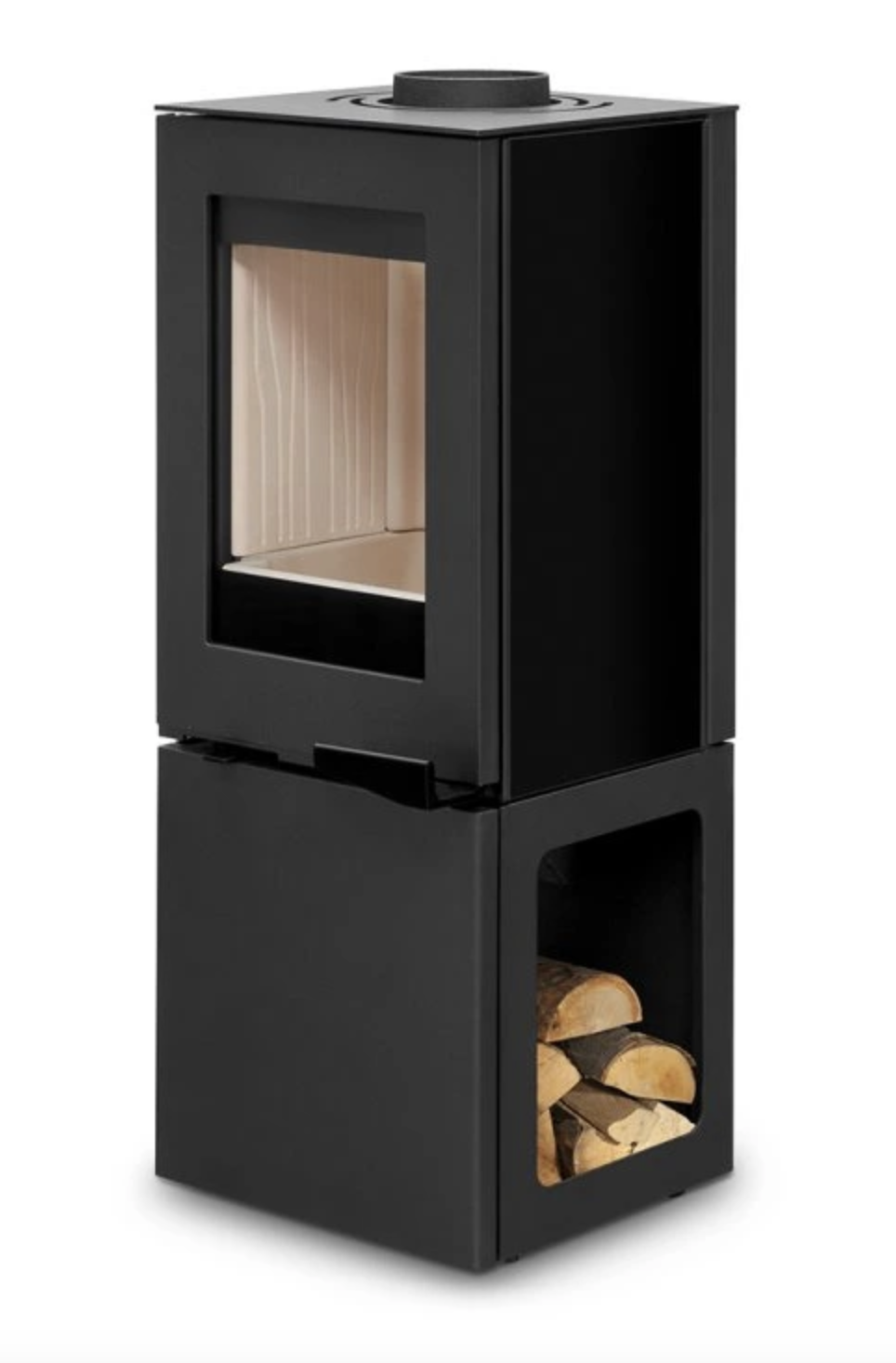...nadchnou litinovými dvířky, samozavíracím systémem dveří, otevřeným dřevníkem a uživatelsky přívětivým ovládáním.
