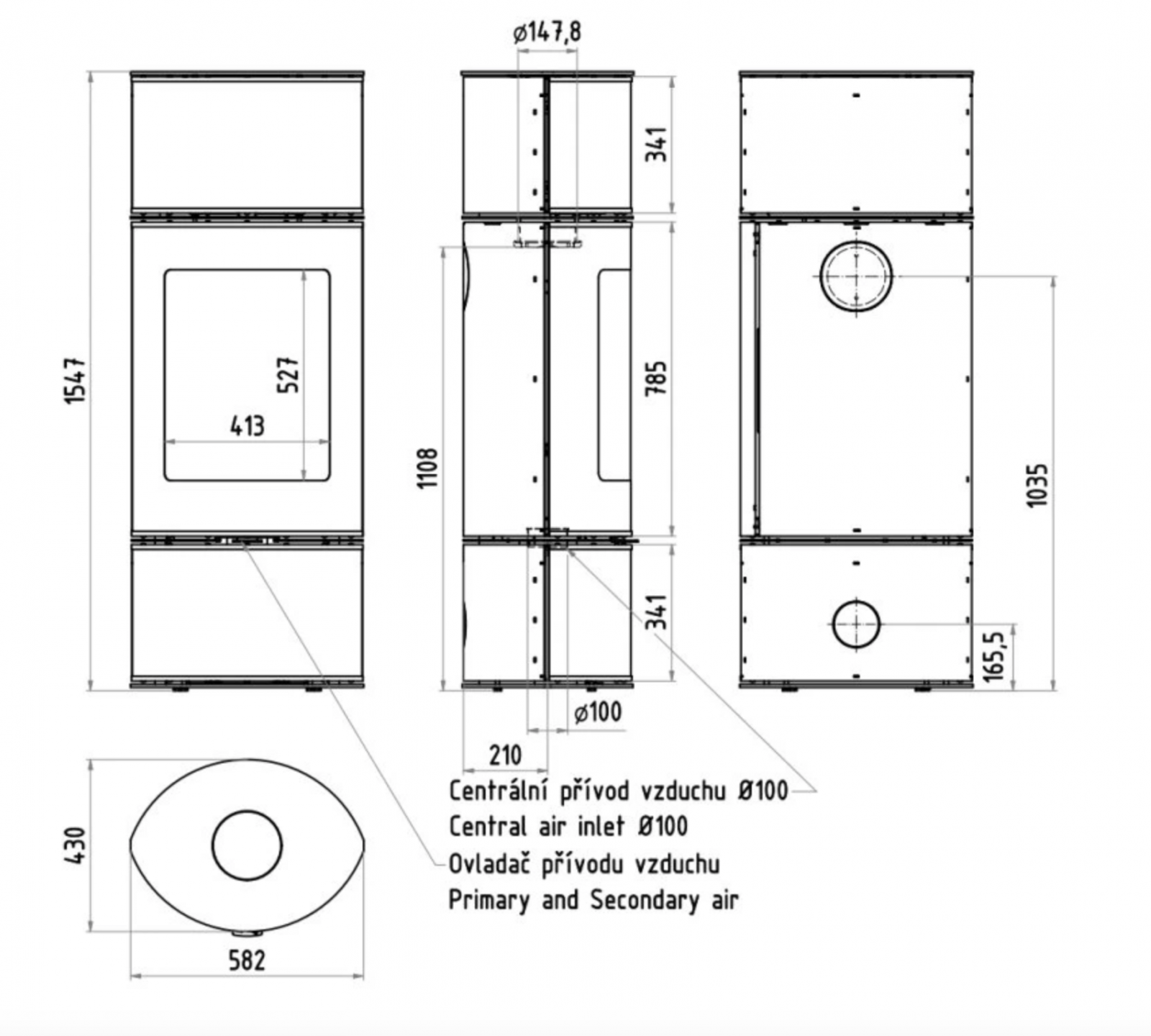 | Přívod vzduchu | 100 mm |