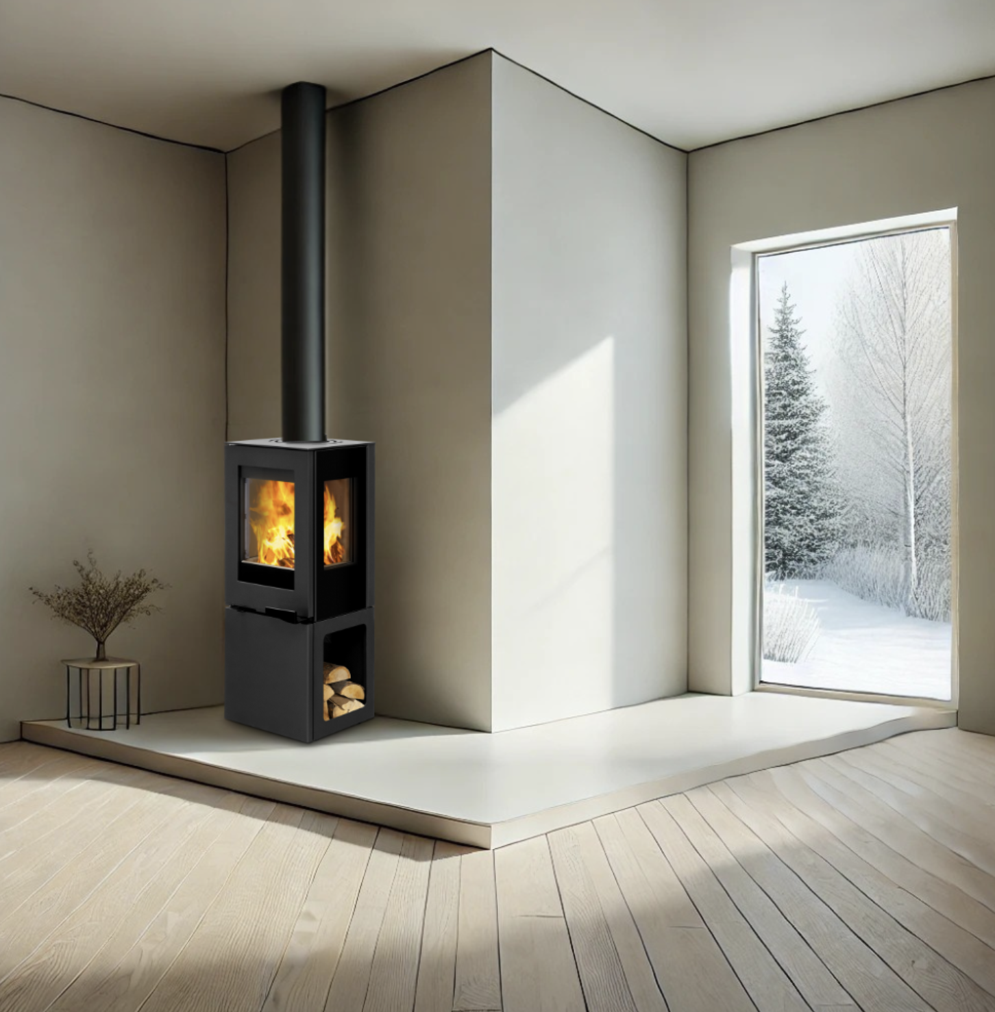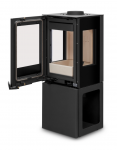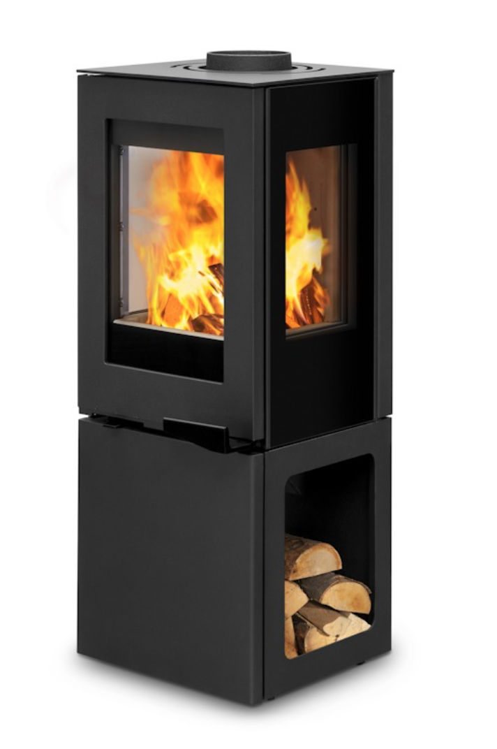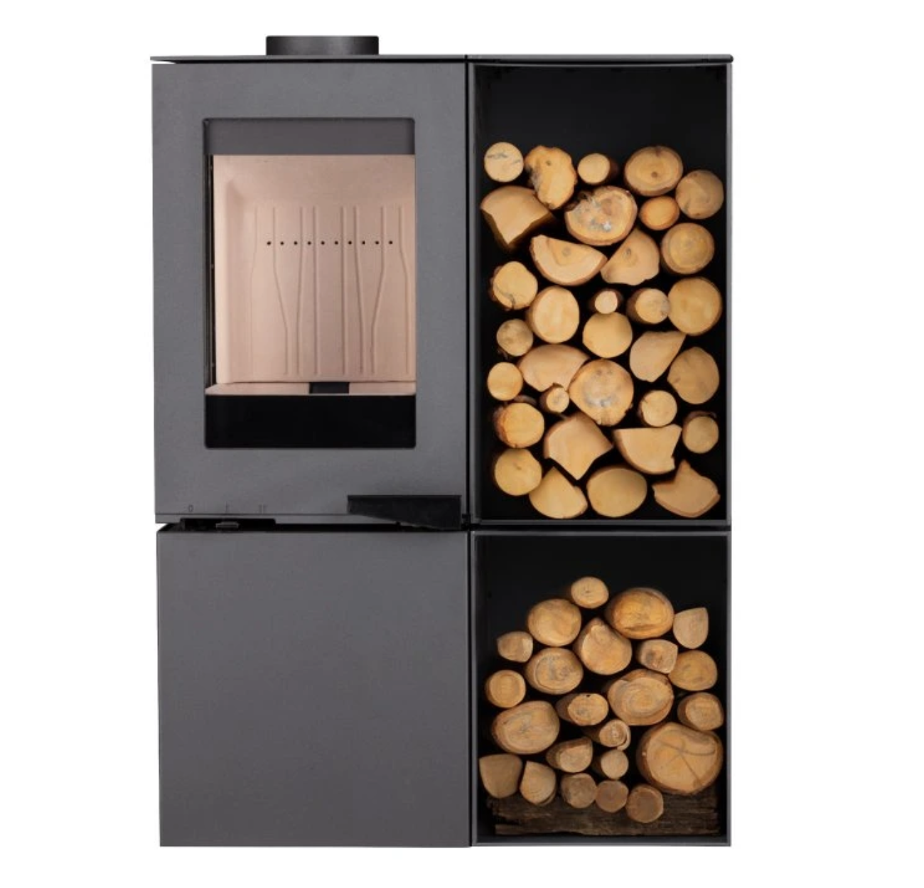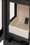 ...nadchnou litinovými dvířky, samozavíracím systémem dveří, otevřeným dřevníkem a uživatelsky přívětivým ovládáním.