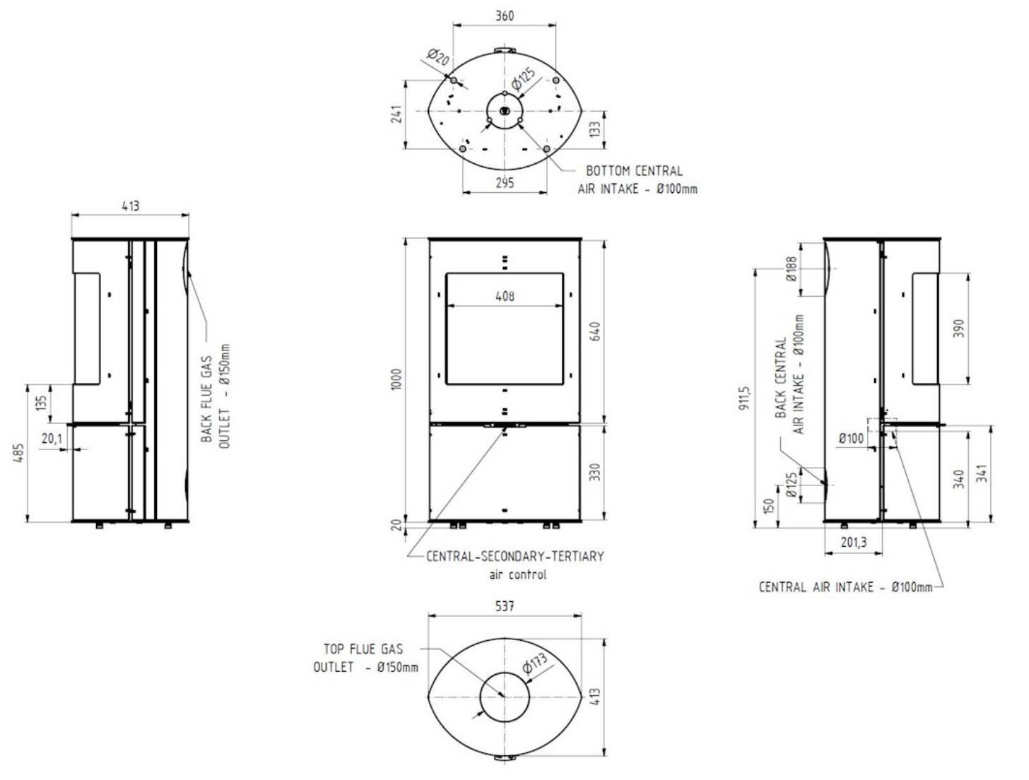 | Odvod kouře | 150 mm |