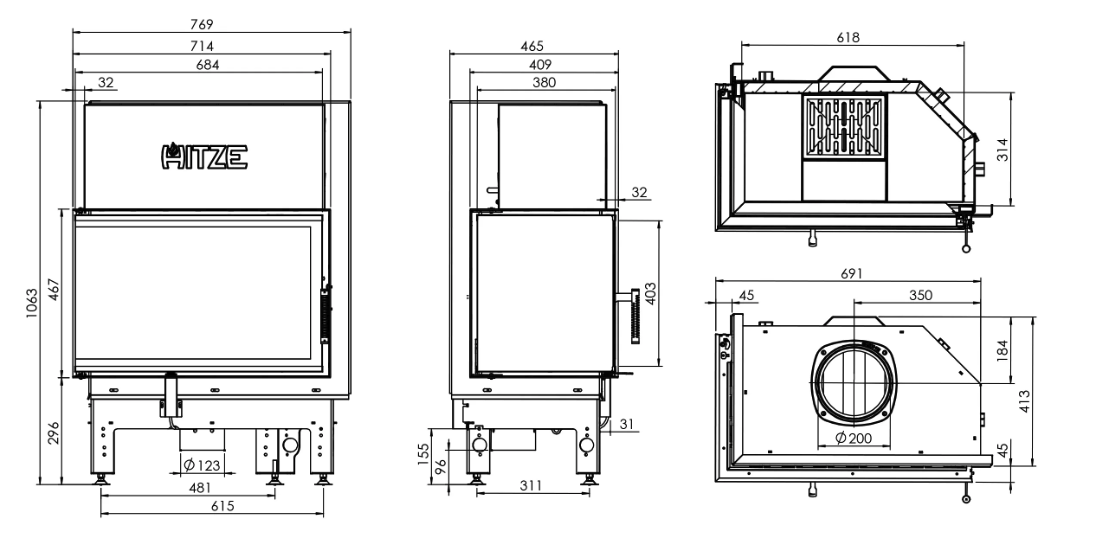 - Speciálně navržená zadní část tělesa umožňuje přívod sekundárního vzduchu do horní části pece. Umožňuje zvýšit účinnost zařízení spalováním výfukových plynů.