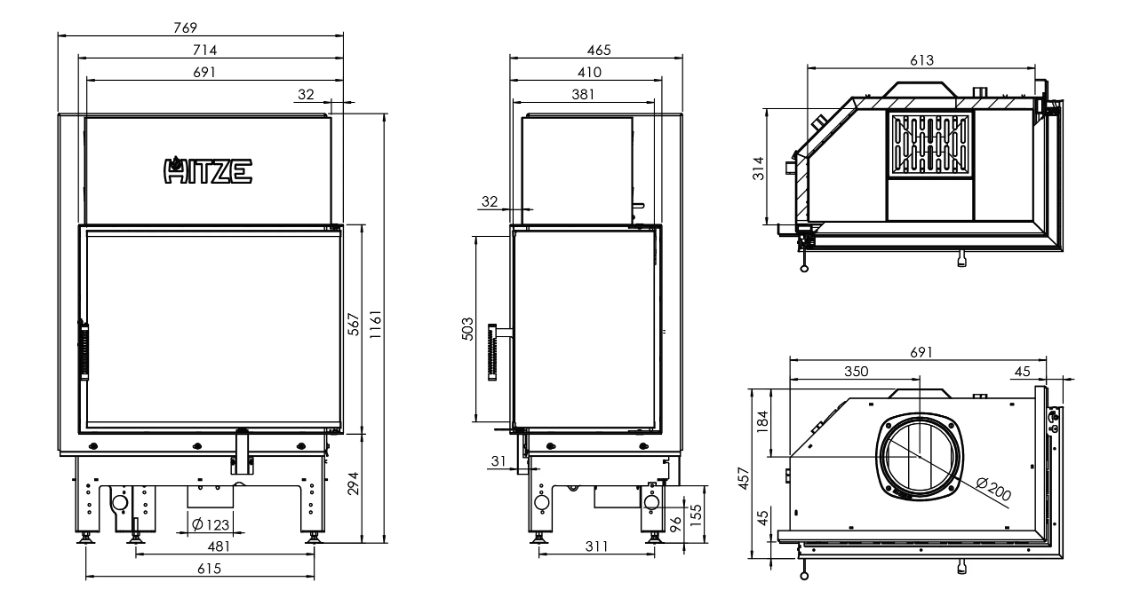 - Speciálně navržená zadní část tělesa umožňuje přívod sekundárního vzduchu do horní části pece. Umožňuje zvýšit účinnost zařízení spalováním výfukových plynů.