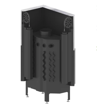 • Speciálně navržená zadní část tělesa umožňuje přívod sekundárního vzduchu do horní části pece. Umožňuje zvýšit účinnost zařízení spalováním výfukových plynů.