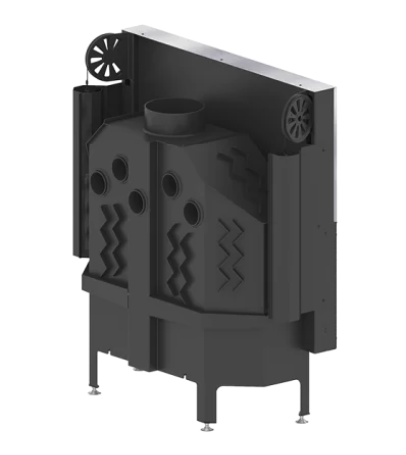 - Speciálně navržená zadní část tělesa umožňuje přívod sekundárního vzduchu do horní části pece. Umožňuje zvýšit účinnost zařízení spalováním výfukových plynů.
