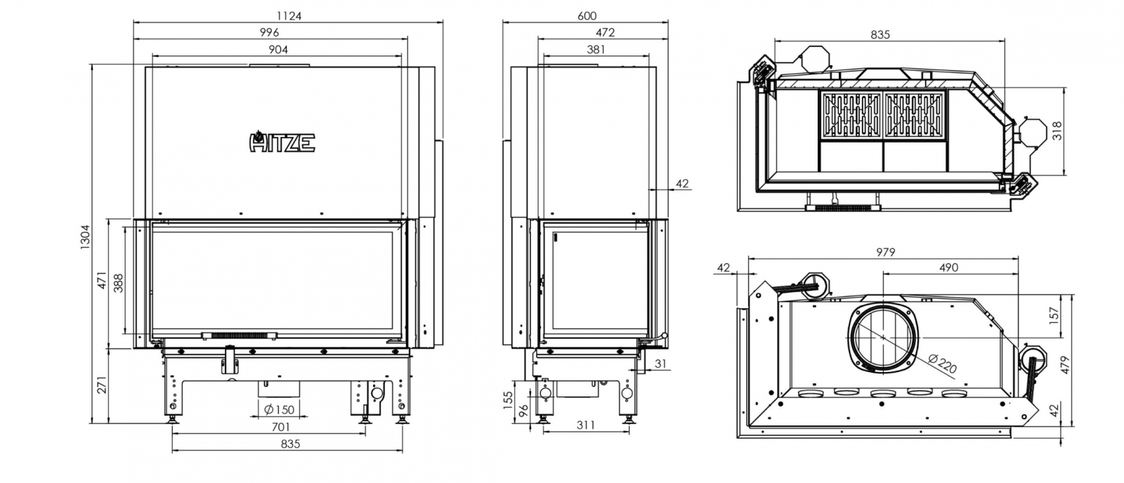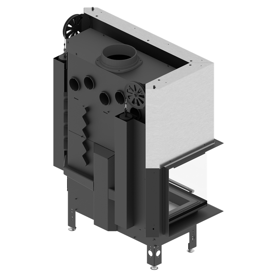 • Speciálně navržená zadní část tělesa umožňuje přívod sekundárního vzduchu do horní části pece. Umožňuje zvýšit účinnost zařízení spalováním výfukových plynů.