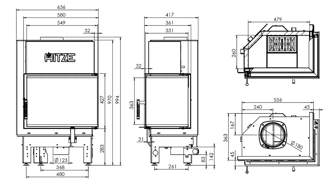 - Speciálně navržená zadní část tělesa umožňuje přívod sekundárního vzduchu do horní části pece. Umožňuje zvýšit účinnost zařízení spalováním výfukových plynů.
