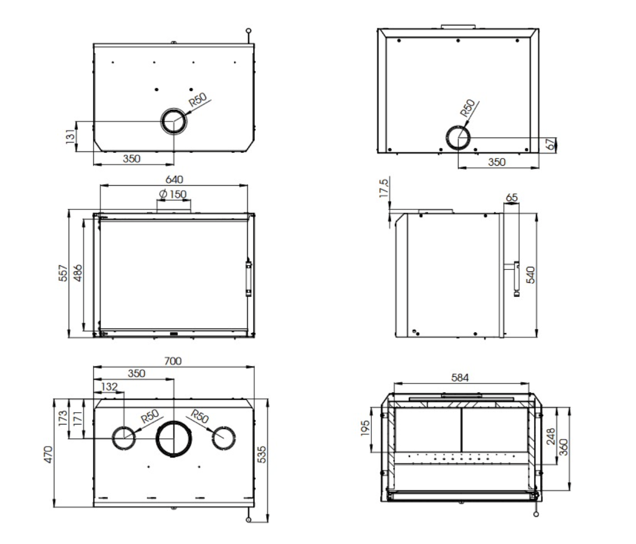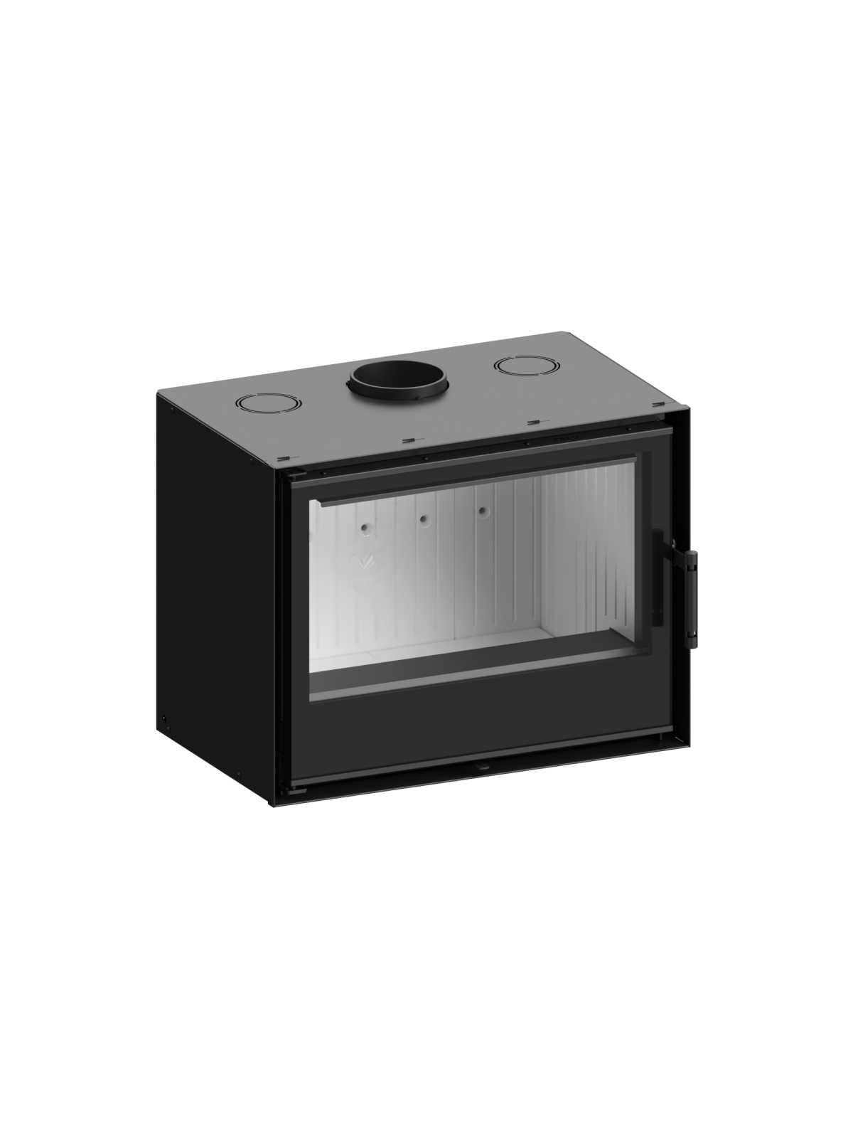 - Odvod spalin montovaný ze středu spalovací komory, průměr 150 mm, umožňuje instalaci do stávajících otevřených krbů.