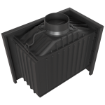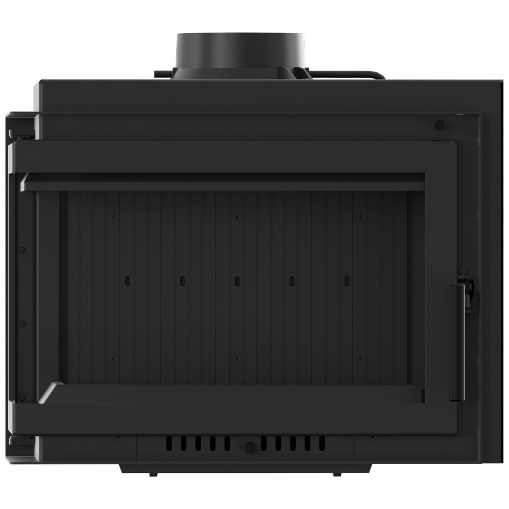 Spalovací komora je navržena pro polena o délce až 35 cm a umožňuje spalování suchého dřeva i dřevěných briket. Průměr kouřového hrdla 180 mm s integrovanou spalinovou klapou zajišťuje snadné napojení na běžné komínové systémy a usnadňuje instalaci.