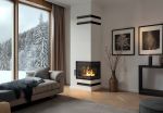 Rohové prosklení na levé straně umožňuje krásný pohled na oheň z různých částí místnosti a zároveň dodává krbu moderní vzhled. Integrovaný systém proudění vzduchu navíc pomáhá udržovat sklo déle čisté a zajišťuje ničím nerušený pohled do ohniště.