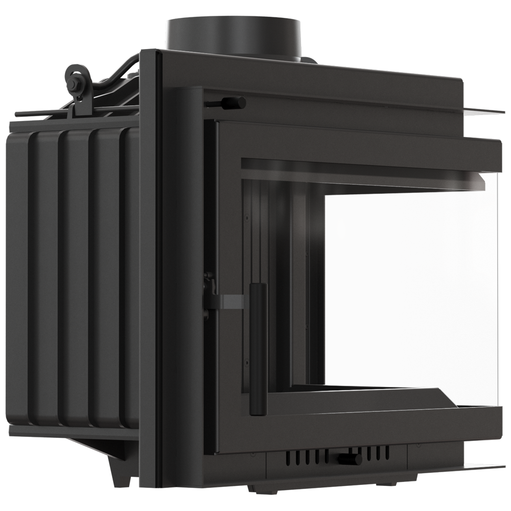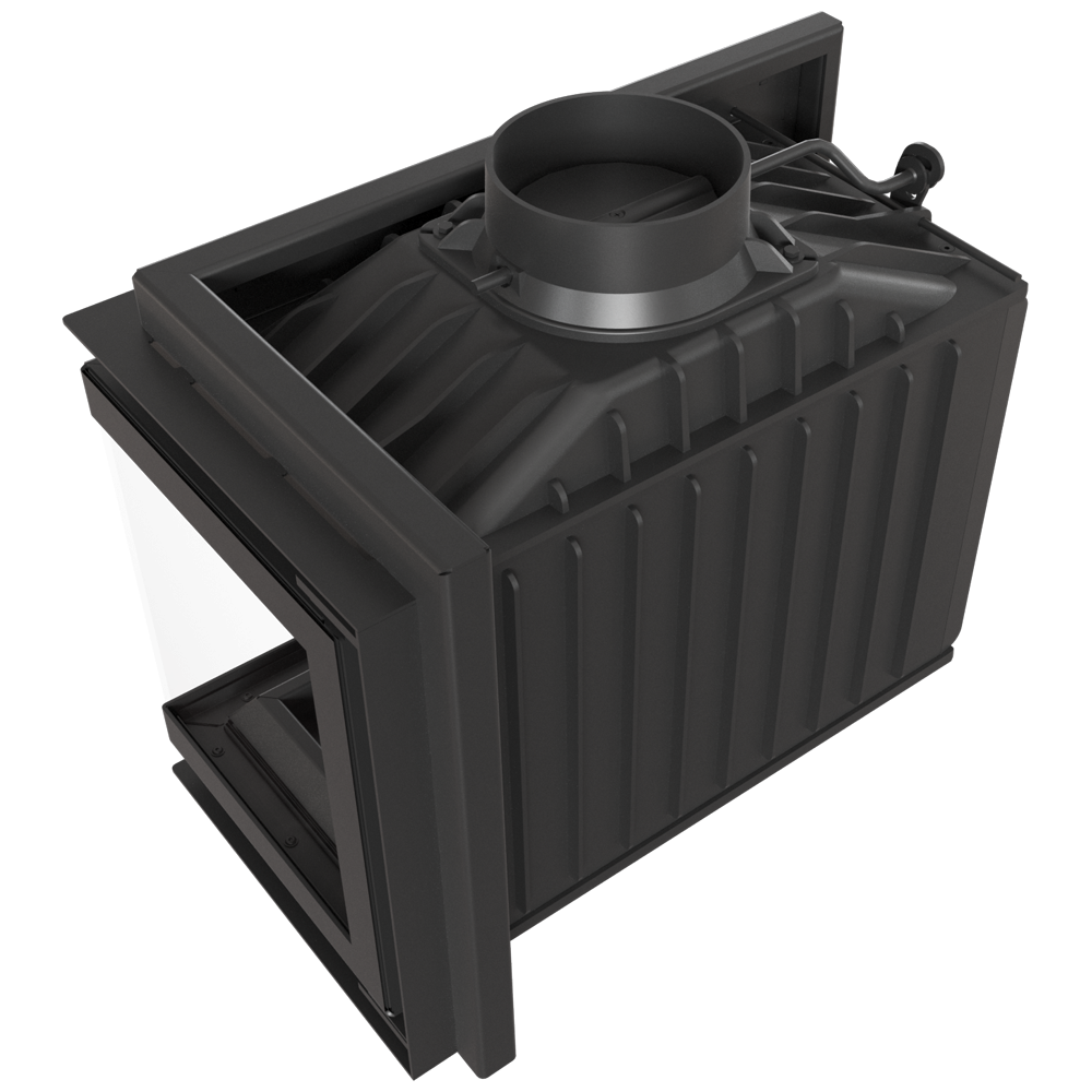 Rohové prosklení na levé straně umožňuje krásný pohled na oheň z různých částí místnosti a zároveň dodává krbu moderní vzhled. Integrovaný systém proudění vzduchu navíc pomáhá udržovat sklo déle čisté a zajišťuje ničím nerušený pohled do ohniště.
