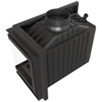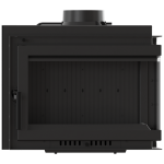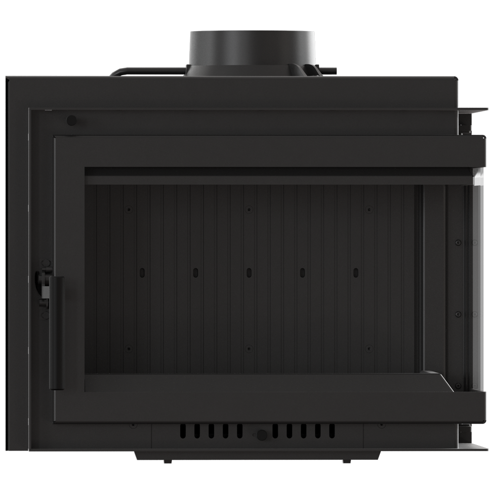 Spalovací komora je navržena pro polena o délce až 35 cm a umožňuje spalování suchého dřeva i dřevěných briket. Průměr kouřového hrdla 180 mm s integrovanou spalinovou klapou zajišťuje snadné napojení na běžné komínové systémy a usnadňuje instalaci.