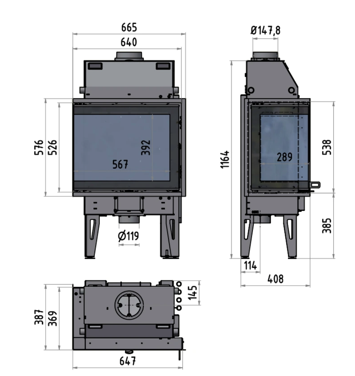 půlprstenců, které prodlouží dobu sálání tepla v obestavbě - Možnost doobjednání dvojité prosklení krbových dvířek