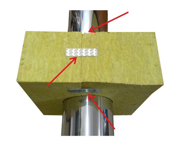 Minerální prostup neřeší parotěsnost stavebního detailu a neumožňuje napojení parozábrany nebo střešní fólie. Je určen pro tepelnou izolaci konstrukce stěny/stropu od procházejícího komína.