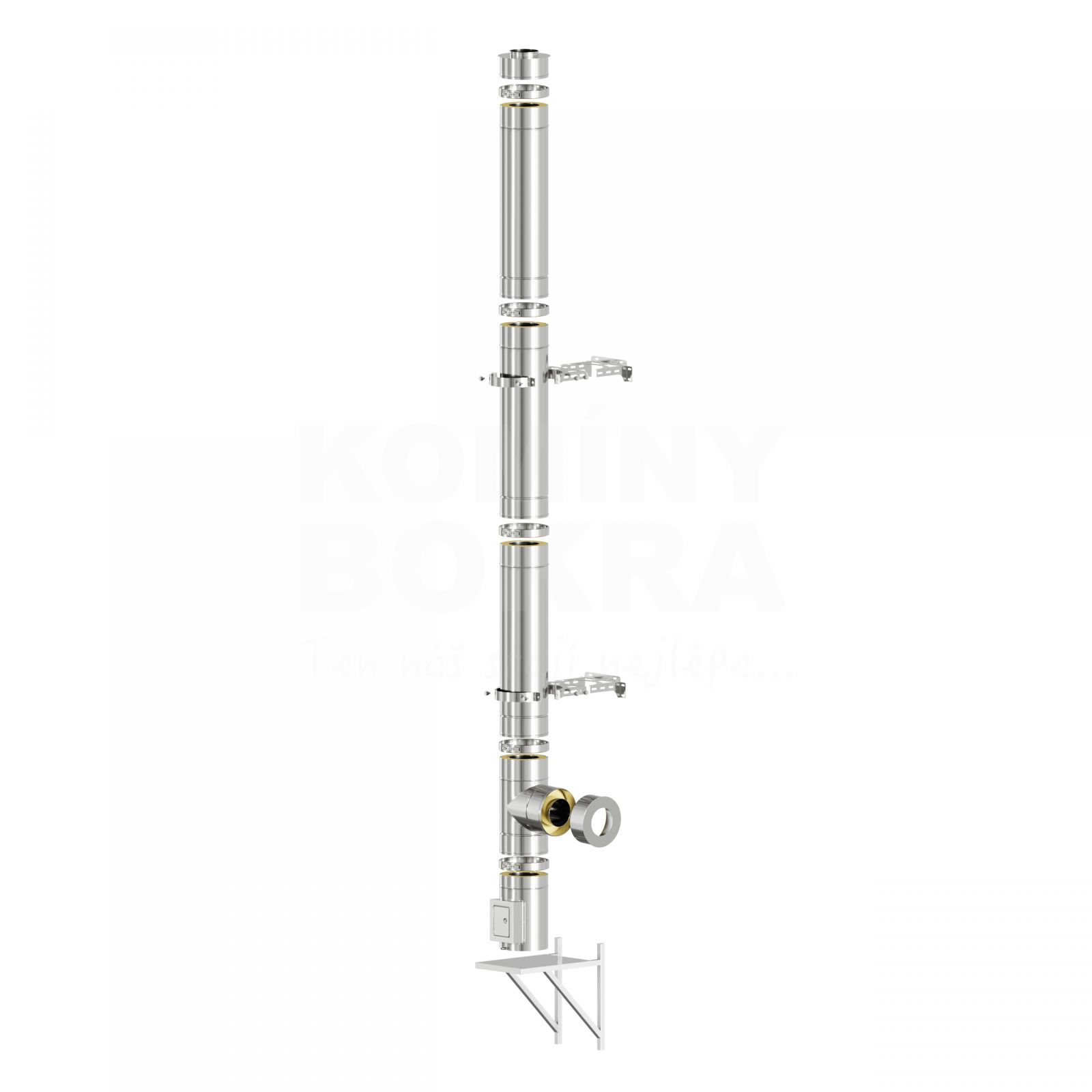 Třísložkový nerezový komínový systém je ideálním řešením pro výstavbu nových komínů. Komínové díly se skládají z vnitřní nerezové vložky tloušťky 0,8mm, ta je izolována speciální minerální vlnou tloušťky 50mm a opláštěná nerezovým plechem tloušťky 0,5mm s vysoce lesklým povrchem. Tento systém je určený pro odvod spalin od spotřebičů na všechny typy paliv. Je vyráběn v průměrech od 110mm až do 300mm (individuální výroba až do 500mm). Systém obsahuje celou řadu komponentů včetně kotvících prvků, což přináší neomezené možnosti při sestavování komínů. Jednotlivé dílce jsou podélně svařovány plazmou a ve své horní části opatřeny hrdlem výšky 100mm, které umožňuje snadné, bezpečné a pevné spoje. Pro zpevnění a statické zajištění je každý spoj fixován vnější sponou. Jednotlivé systémy BOKRA lze vzájemně kombinovat.