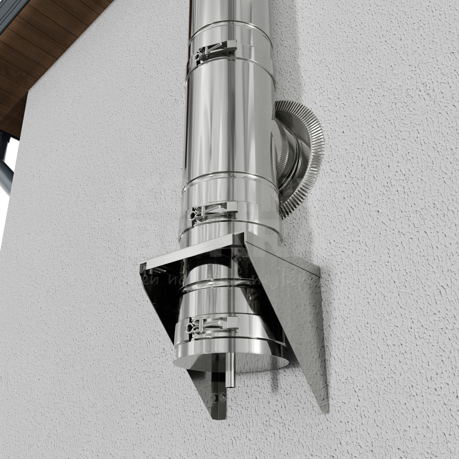 Komínový set umožňuje odstup 70-150 mm od fasády. Ke komínu je možné dokoupit rouru skrz stěnu - dle tloušťky stěny.