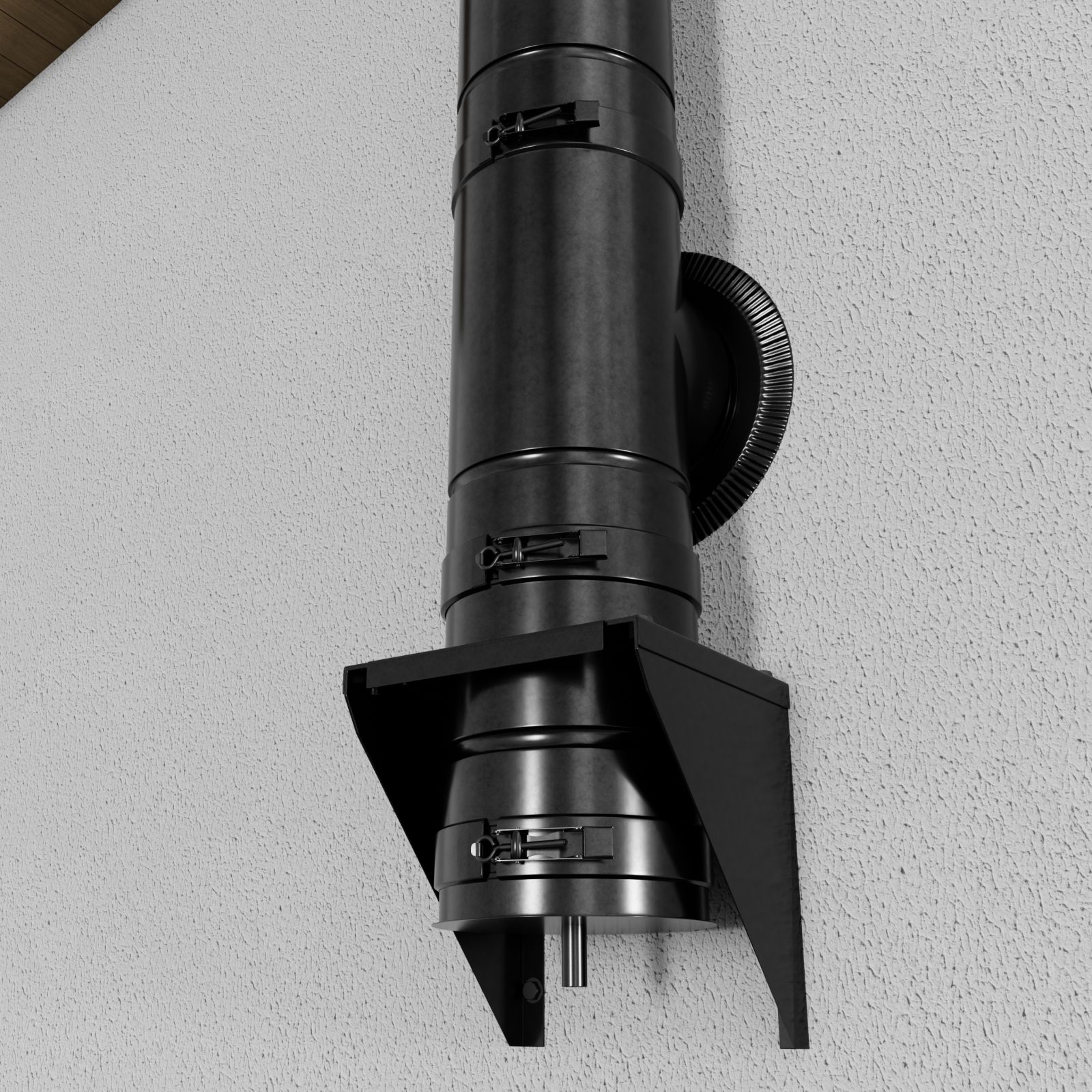Komínový set umožňuje odstup 70-150 mm od fasády. Ke komínu je možné dokoupit rouru skrz stěnu - dle tloušťky stěny.